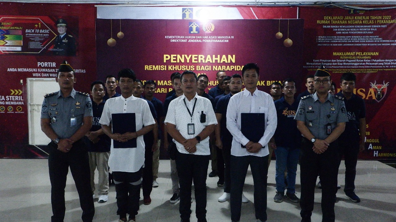 Pekanbaru, Kabarmonitor.com- Dalam rangka menjamin hak-hak warga binaan, Rutan Kelas I Pekanbaru Kanwil Kemenkumham Riau memberikan Remisi Khusus Natal kepada warga binaan, pada Senin (25/12).